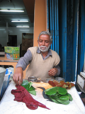 人によってはタバコの葉や白壇の樹(香木)を一緒に巻いたりもします。それを噛んで楽しみます。