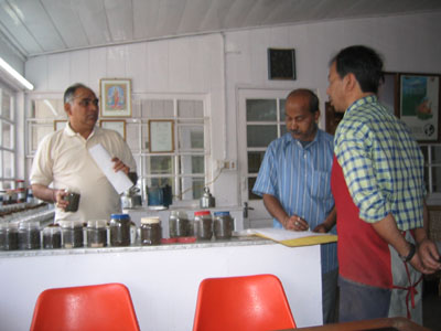 そこでこの「お茶の旅 インド茶畑編」にこのマネージャーのお仕事振りをご紹介しようと思っております。 大変仕事熱心で厳しい商品管理がこのダージリンで5本の指にはいる有名茶園を作り上げていると思います。ではまずはマヘーシュマネージャーの仕事を紹介させていただきます。