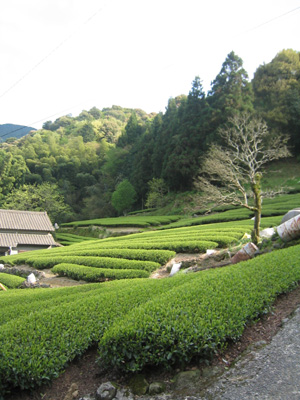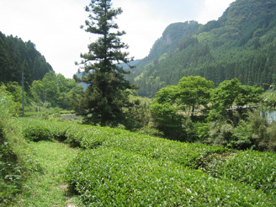紅葉で有名な渓谷「耶馬溪」の近くに無農薬、有機栽培の生産者が集まりお茶だけでなく色々なものを作っているエリアが有ります。2003年夏フランスでオーガニックの日本茶を探してほしいとの依頼で九州と静岡の日本茶を探しました。その無農薬の煎茶のために2回ここを訪ねました。 きれいな渓流の横で新鮮な空気をたっぷり吸って育っているお茶は、すっきりした味で美味しいです。今都会の水道のカルキ臭の問題で深蒸の煎茶が多いですが丁度良い蒸ですっきりしていて懐かしい昔の日本茶を思い出します。
