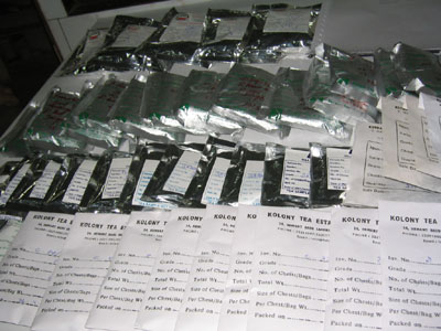 この会社には、たくさんの紅茶のサンプルが毎日インドのアッサムやダージリンから届けられます。ニルギリやドアーズはここでは取引きされません。ダージリン中心で一部アッサムもカルカッタでオークションにかけられます。