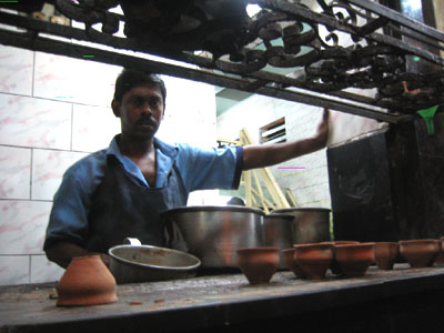 カルカッタの街の中で真夜中まで開いている超人気店のチャイ屋さんに行きました。夜中カルカッタの友人がチャイを飲みに行きませんか?と誘ってくれ『こんな時間にチャイ屋さんあいているの?』と言うと深夜まであいているだけでなく、大変な人気店で車でドライブスルーじゃないけれど乗り付けてチャイやラッシーを飲みに来るそうです。それでは一度ということで、ツアーの方には悪いのですが数人で出かけて飲みに行きました。本当に美味しく人気があるのが理解できます。