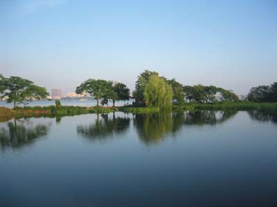 対岸にはビルが立ち並び政府が所有しているこの湖も宅地に埋め立が進みて、蓮の田んぼがだんだん小さくなっているそうです。蓮茶に使う蓮の花が年々少なくなっているそうです。