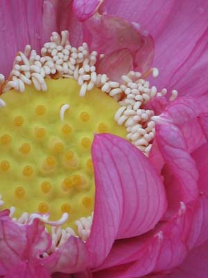 ここベトナムのハノイ近郊で採れる蓮は大きな花びらの中に小さな花びらがたくさんあります。これがおしべを守り特に香りが強くはす茶に最適です。真ん中の白いのがガオセン(蓮の米)と呼ばれています。この白いおしべで薫香します。