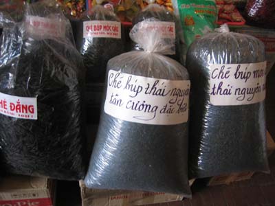 ベトナムは、緑茶の産地で有名ですが黒茶やウーロン茶もたくさん作っています。ベトナムの方は緑茶を飲みますがこの写真のお茶はタイグェンのお茶で1kg10$前後です。ベトナムの収入から考えると高価なお茶で多くの方は生の葉を朝市場で買って少し茹でて茹で汁のお茶を飲みます。今回の蓮茶以上に私には新しい発見で聞いたときは野菜の茹で汁を想像して青生臭いかと思っていましたが実際飲ませていただくととても美味しくて感動しました。北のほうだけの習慣と聞きましたが美味しくて『目からうろこ』です。