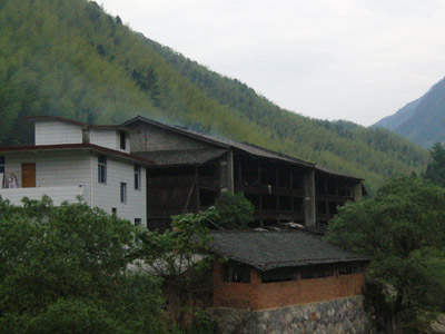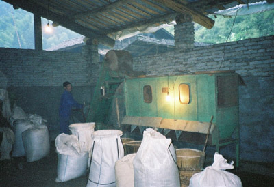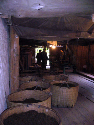 工場です、小さな「青楼 −チンロウ」と呼ばれているこのあたりの紅茶を作る独特の建物がありますがこの大きな建物にもそれと同じ設備があります。これを「青楼」と呼ぶのかどうかは知りませんが、一番最初に桐木村に来たときは、村の中でもっと小さな木造3階建ての「青楼」を見ました。
