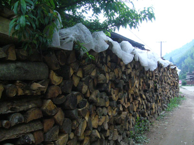 たくさんの薪です。これは松の煙の香りをつけるための木ではありません。この江さんの製茶場では1階でウーロン茶も作っています。それも薪の木で乾燥させたりしています。問題の松の香りのするLaspang Souchong (ラプサン・スーチョン)はどんな 木で香りをつけているのでしょうね!
