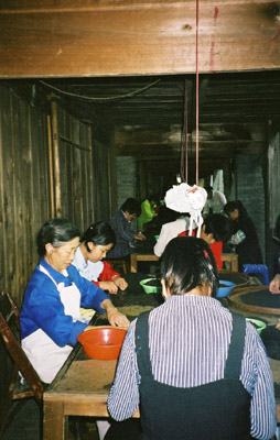もともと武夷山は高地のため温度が低くお茶を発酵させるのに加温が必要でこのような独特のお茶の製茶用の建物を使っているそうです。初めて見たときは大変感動しました。お茶を作るのに知恵を働かせ工夫して作られる!ここで作られた発酵茶をヨーロッパに運んで飲み始められたと思うと人のお茶に対する熱意は飲む人も作る人も昔からすごいな〜〜〜とおもわず感激!!