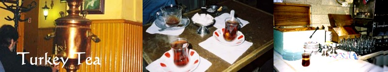 お茶はオスマントルコ時代の初期に、中国経由でヨーロッパから入ってきました。その当時、「お茶を一杯」という習慣は、茶葉の輸入量 が限られていたので、一部の人だけで楽しまれていました。200年ほどまえから、人々の間にお茶が浸透していき、普段いちばんよく飲む熱い飲み物になりました。今では飲まれているお茶のかなりの量 を自国で栽培しています。黒海沿岸のリゼの東にある高音多湿の丘で栽培されており、茶畑の大部分は急斜面にあります。